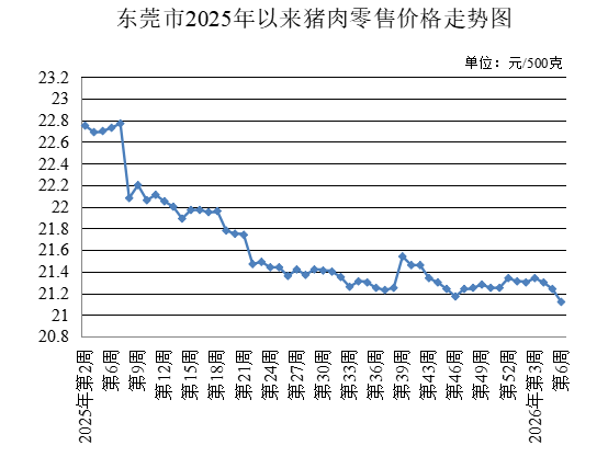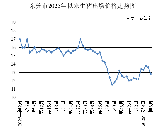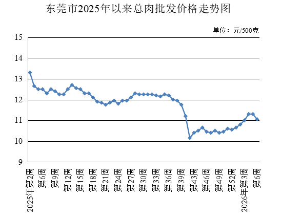 第6周,生猪出场价格为每公斤12.80元,较上周下降5.88%。总肉批发均价为每500克11.05元,较上周下降2.21%。